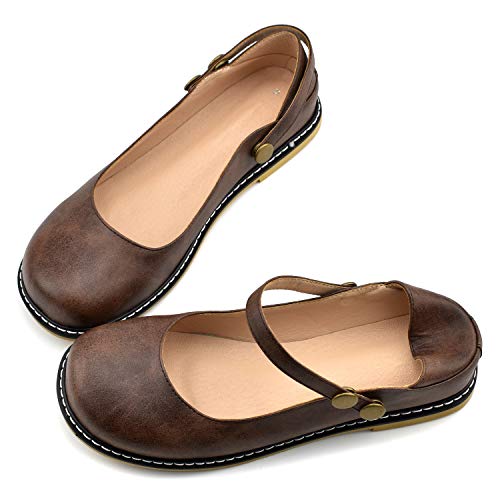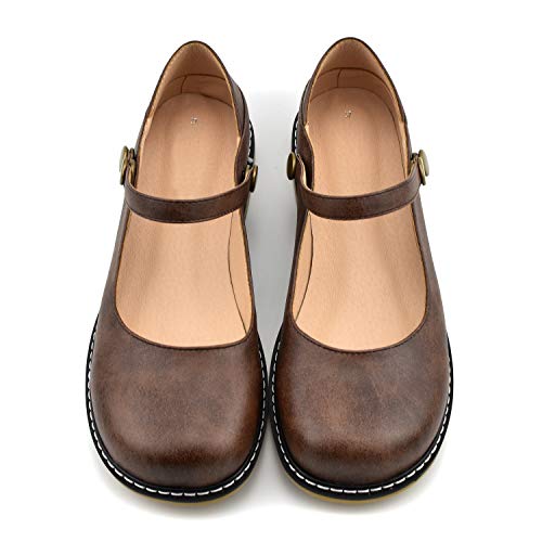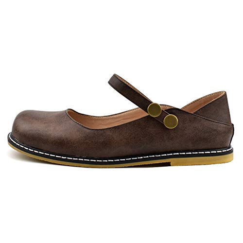 100FIXEO Women Buckle Ankle Strap Mary Jane Flat Shoes