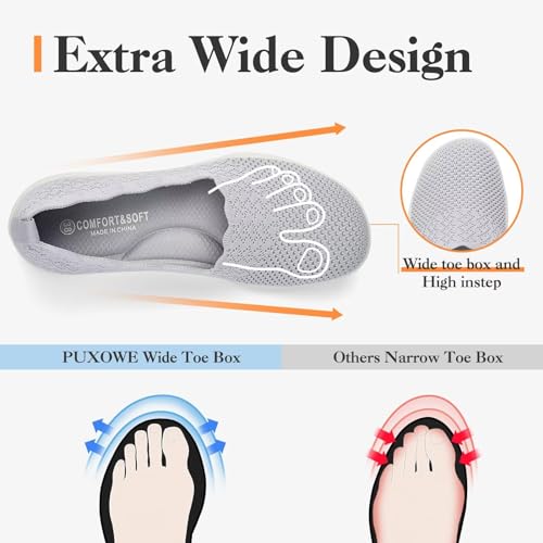Puxowe Women’s Casual Slip on Walking Shoes-Lightweight Knit Loafer
